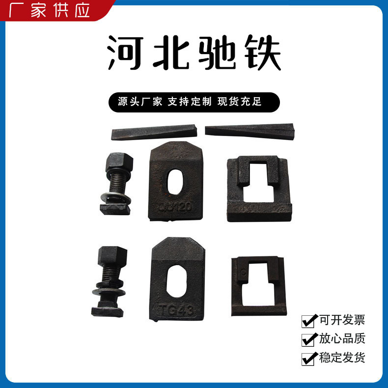 鐵路配件行車配件工礦配件魚(yú)尾板道釘壓軌器軌道壓板軌距拉桿護(hù)軌扣板T型螺栓魚(yú)尾螺栓彈條